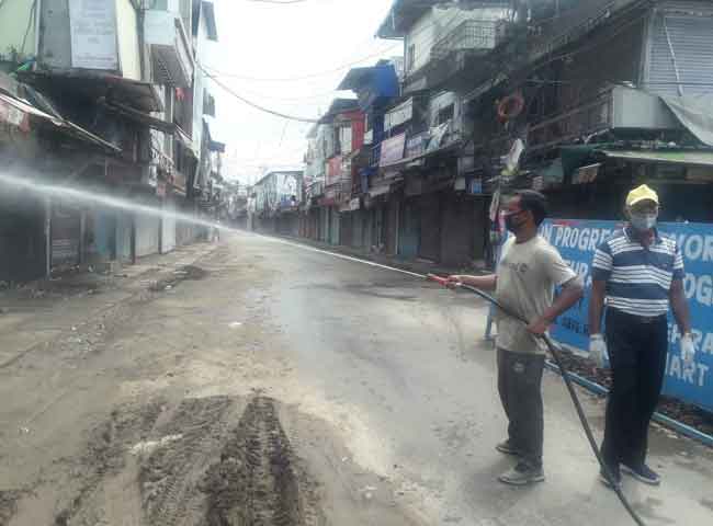 कोरोना संक्रमण का मामला सामने आने के बाद आज पलटन बाजार में पूर्ण लॉकडाउन, किया जा रहा सैनिटाइज