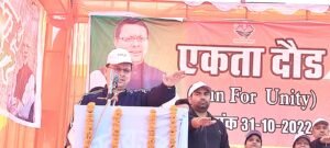 Run For Unity (रैली) में मुख्यमंत्री पुष्कर सिंह धामी द्वारा दौड़ को हरी झंडी दिखाकर रवाना किया