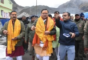 बर्फ़बारी के बीच केदारनाथ धाम पहुँचे सीएम धामी, निर्माणकार्यों का लिया जायज़ा