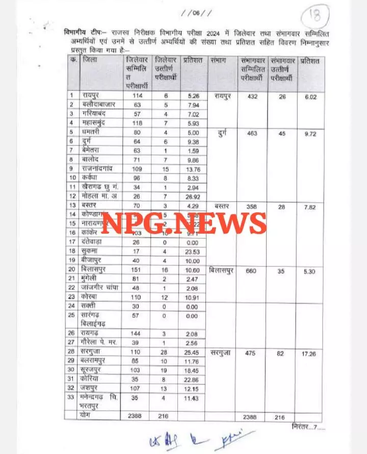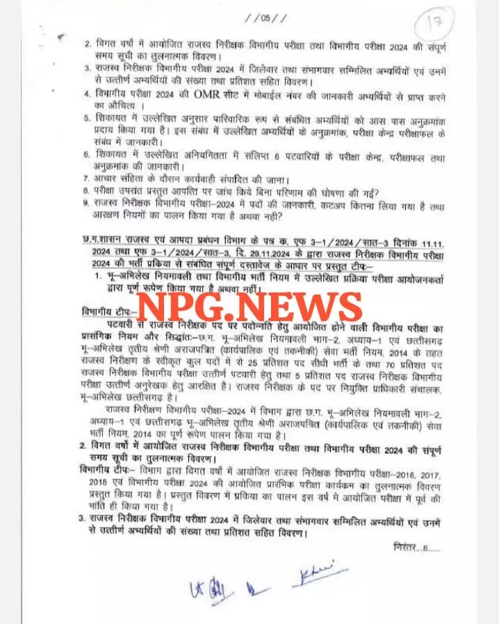 छ.ग. शासन राजस्व एवं आपदा प्रबंधन विभाग के पत्र क. एफ 3-1/2024/सात-3 दिनांक 11.11. 2024 तथा एफ 3-1/2024/सात-3, दि. 29.11.2024 के द्वारा राजस्व निरीक्षक विभागीय परीक्षा 2024 की भर्ती प्रकिया से संबंधित संपूर्ण दस्तावेज के आधार पर प्रस्तुत टीपः-