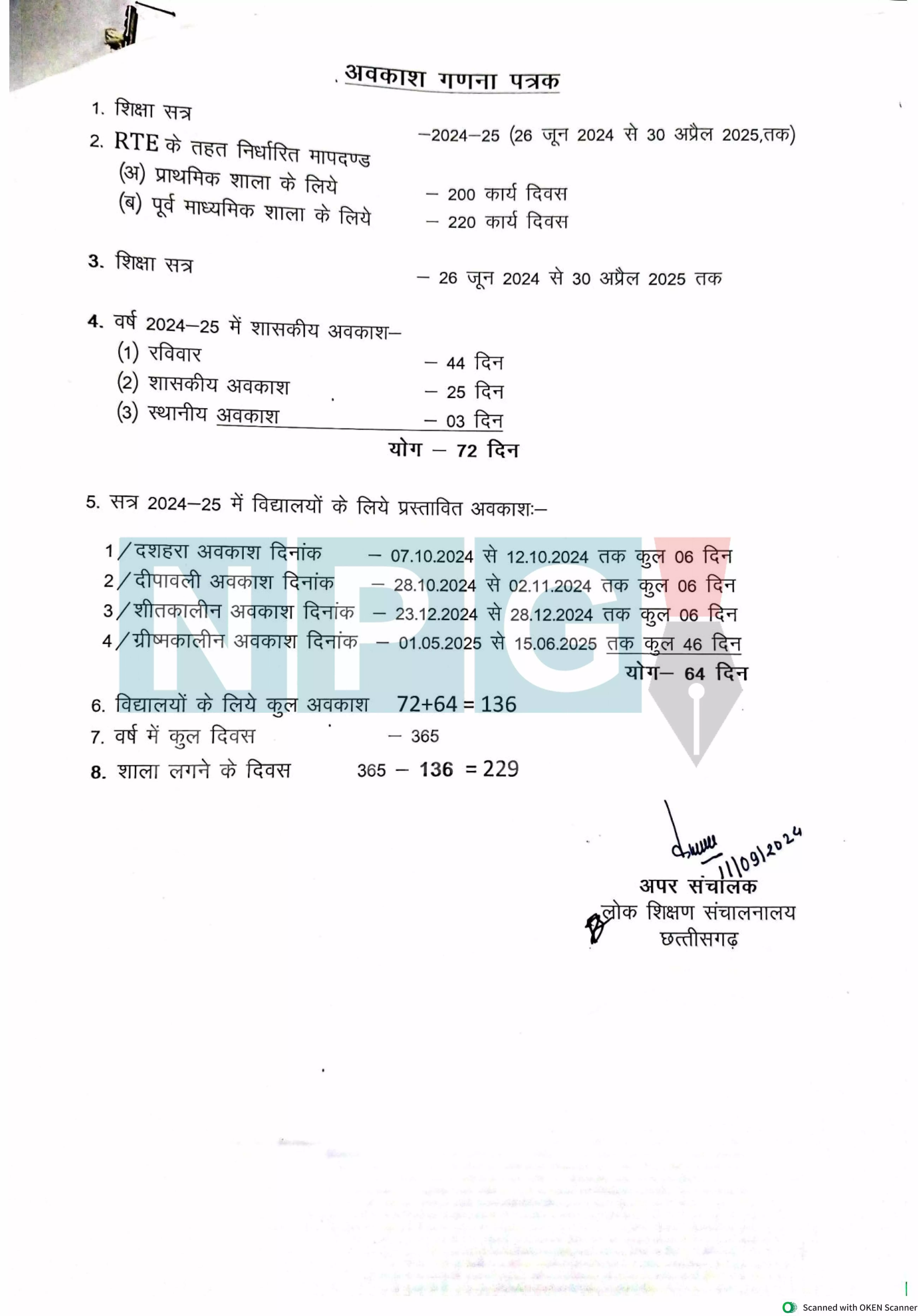 CG holiday announcement रायपुर। छत्तीसगढ़ सरकार ने 64 दिनों का अवकाश जारी किया है। आदेश में दशहरा, दीपावली, शीतकालीन, ग्रीष्मकालीन की छुट्टी दर्ज है। ग्रीष्मकालीन अवकाश 6 दिनों का, दशहरा में 6 दिन, दीपावली 6 दिन और ग्रीष्मकालीन अवकाश 46 दिन का है। नीचे देखें आदेश…