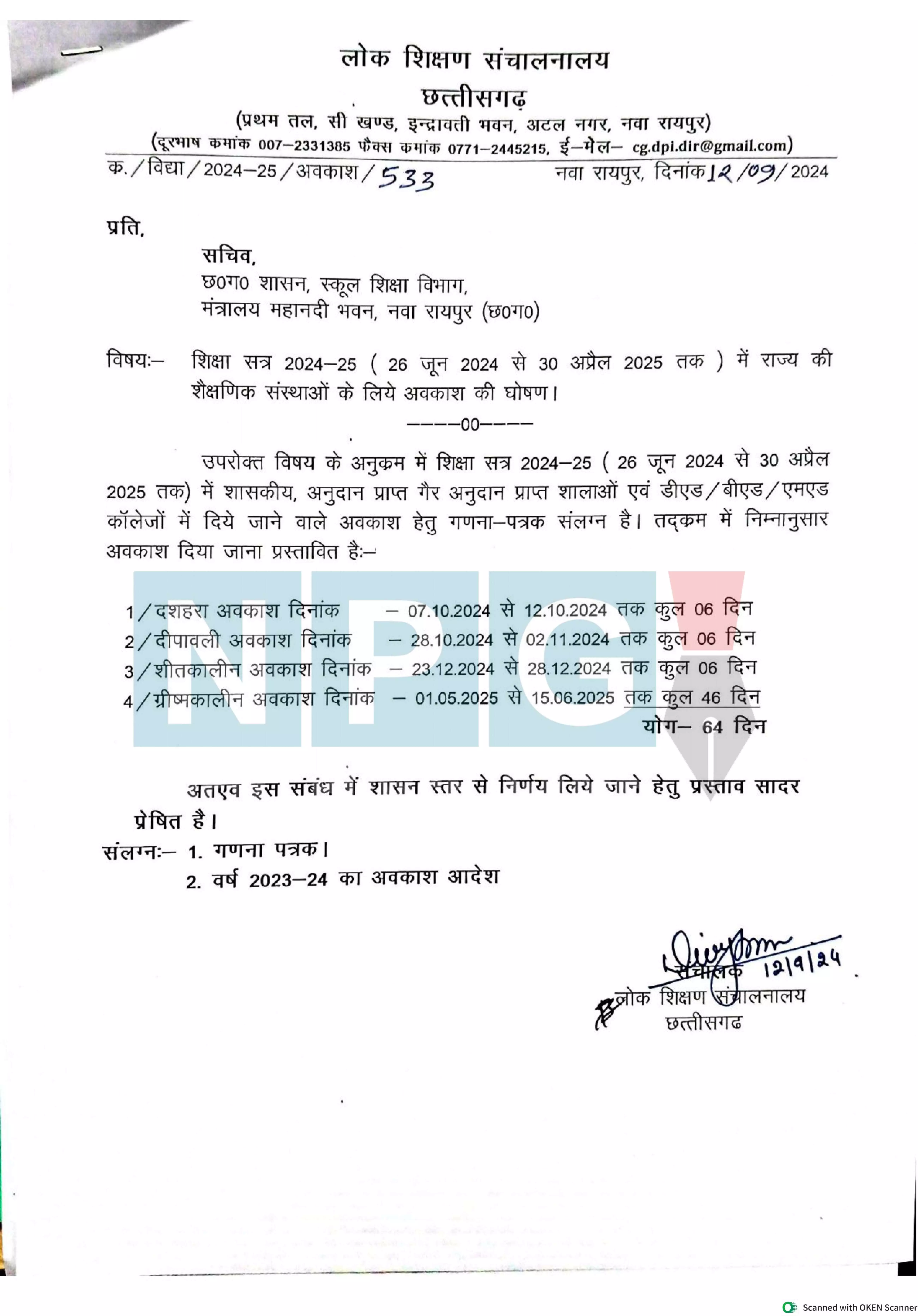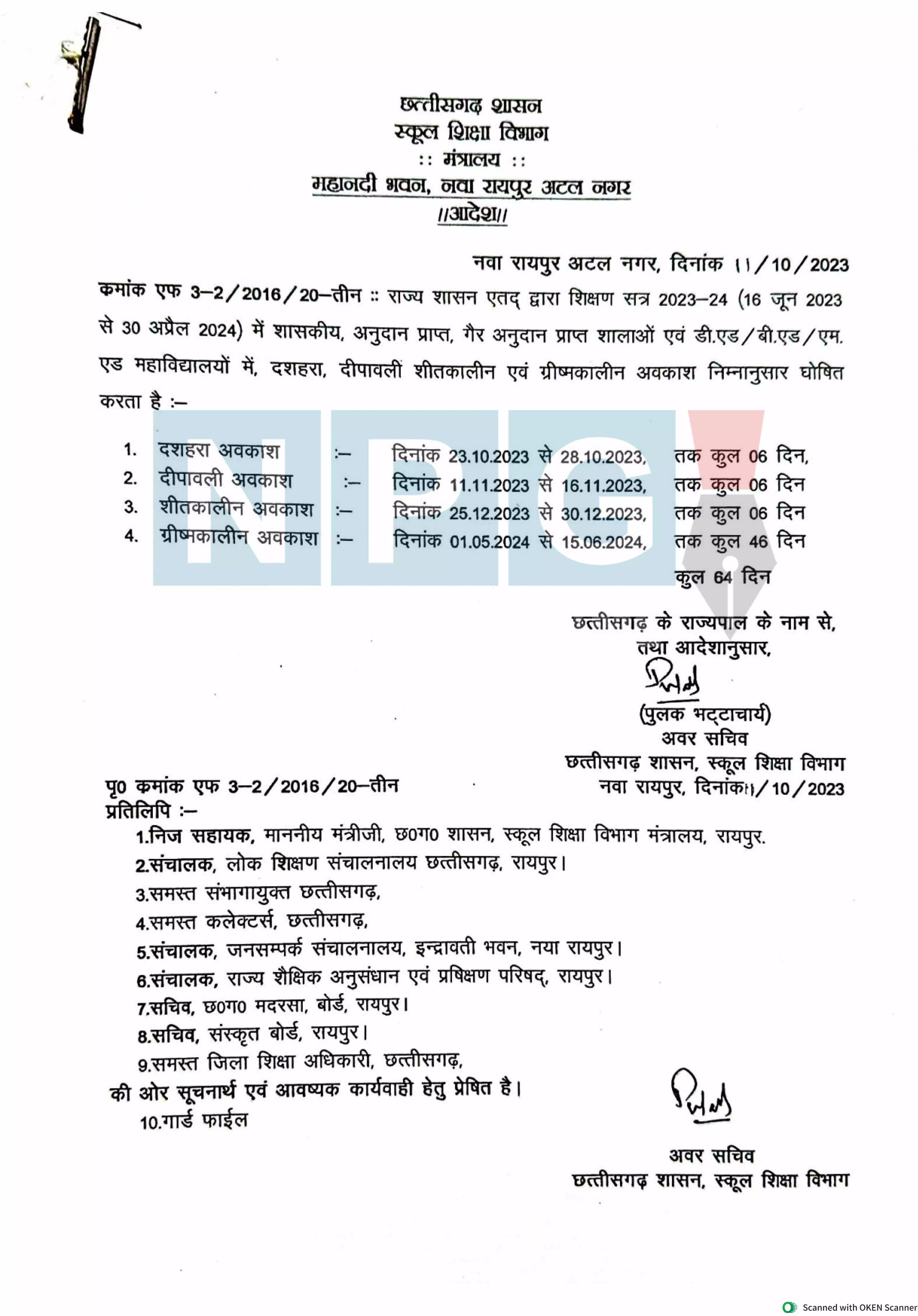 CG holiday announcement: अवकाश की घोषणा, दशहरा, दीपावली, शीतकालीन, ग्रीष्मकालीन अवकाश का ऐलान, राज्य सरकार ने 64 दिनों की छुटटी की जारी…देखें आदेश