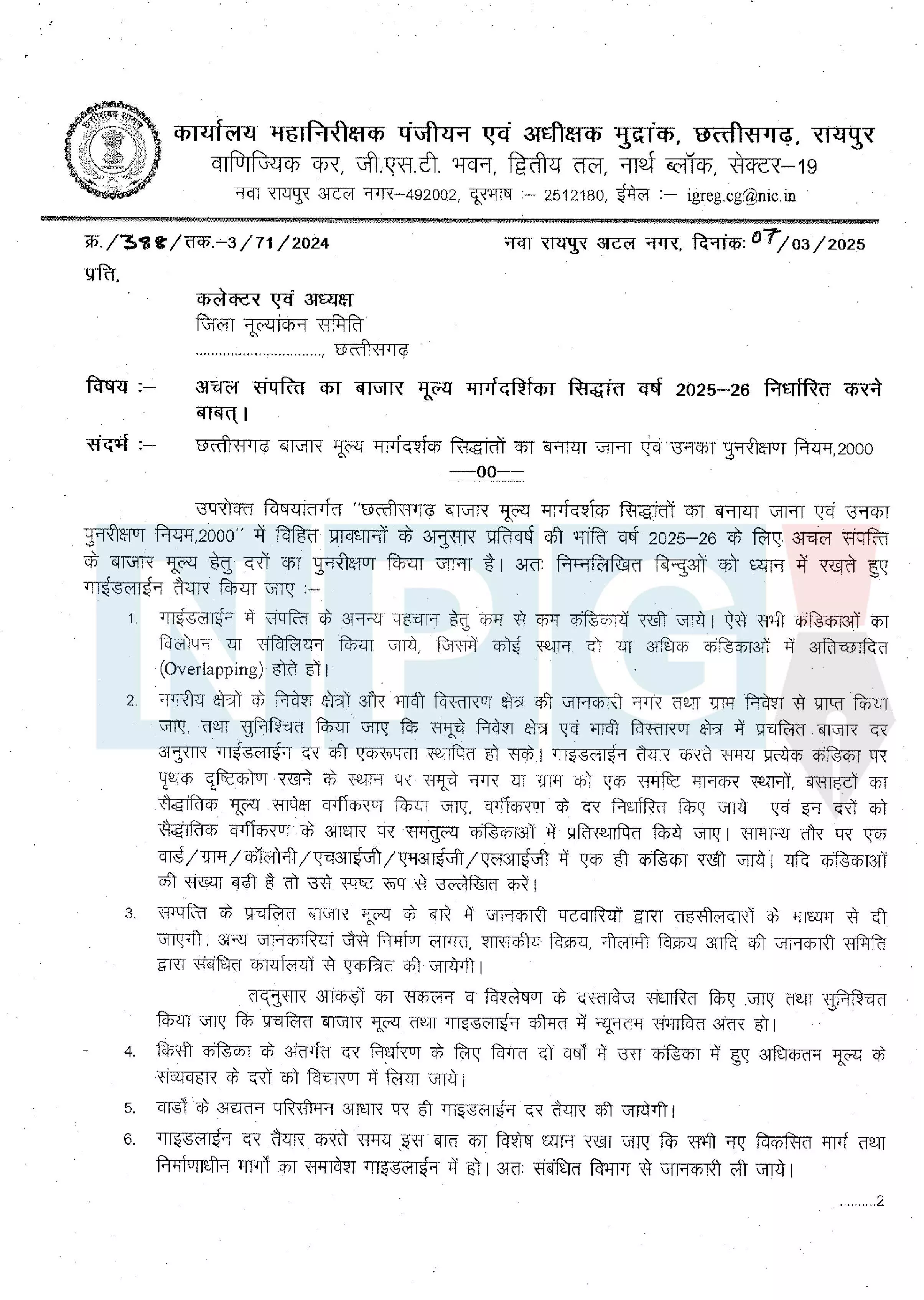 CG News: जमीनों का गाइडलाइन रेट 1 अप्रैल से बढ़ेगा? पढ़िये पंजीयन विभाग के IG पुष्पेंद्र मीणा ने कलेक्टरों को क्या लिखा पत्र…