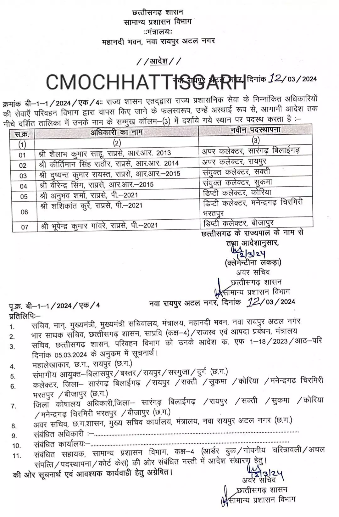 CG Transfer: ट्रांसफर ब्रेकिंग न्‍यूज: अपर कलेक्‍टर, संयुक्‍त कलेक्‍टर और डिप्‍टी कलेक्‍टरों का ट्रांसफर, देखें सूची