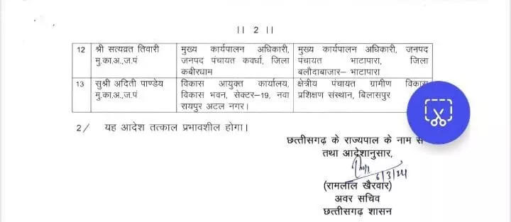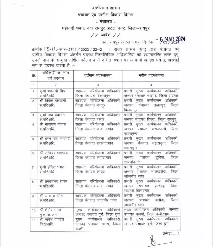CG ट्रांसफर: पंचायत एवं ग्रामीण विकास विभाग में तबादले, आदेश जारी