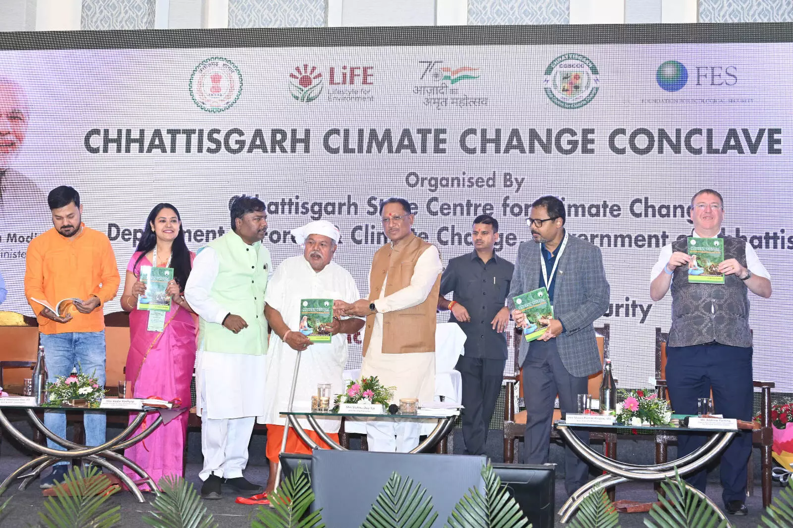 मुख्यमंत्री ने ‘‘छत्तीसगढ़ स्टेट एक्शन प्लान ऑन क्लाइमेट चेंज‘‘ तथा एक्शन प्लान की मॉनिटरिंग के लिए डेस बोर्ड, बस्तर में ट्रेडिशनल हेल्थ प्रेक्टिसेस पर केन्द्रित पुस्तक ‘‘एन्शिएंट विसडम‘‘ और बॉयोडायवर्सिटी इन कांगेर वैली पुस्तक का विमोचन किया। इस अवसर पर जलवायु परिवर्तन पर आधारित एक शॉर्ट फिल्म का प्रदर्शन किया गया।
