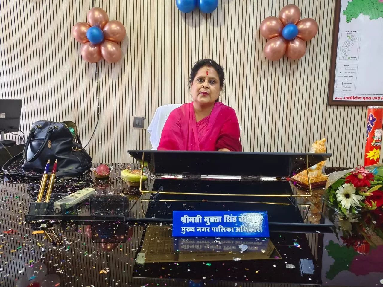 पता चला है, मुक्ता चौहान ने मनेंद्रगढ़ में एकतरफा प्रभार लिया, क्योंकि उस समय सीएमओ बाहर थे। पदभार ग्रहण करने से पहले नगरपालिका कार्यालय और सीएमओ कक्ष को बैलून से दुल्हन की तरह सजाया गया। स्वागत द्वार बना। राजनेताओं की तरह हवन पूजन हुआ। हालांकि, इस बात की शिकायत इलाके के मंत्री श्याम बिहारी जायसवाल तक पहुंच गई है। उन्होंने मीडिया से कहा, पार्षदों ने उनसे सीएमओ की शिकायत की है।