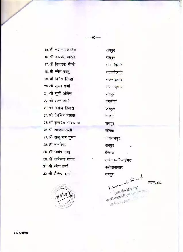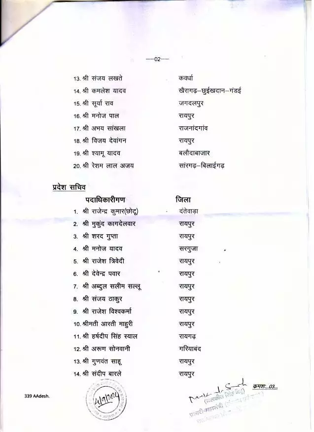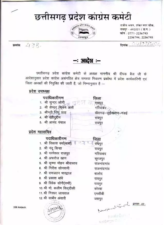 Chhattisgarh News: रायपुर। प्रदेश कांग्रेस अध्यक्ष दीपक बैज ने अपनी नई कार्यकारिणी का गठन किया है। देखें पूरी सूची