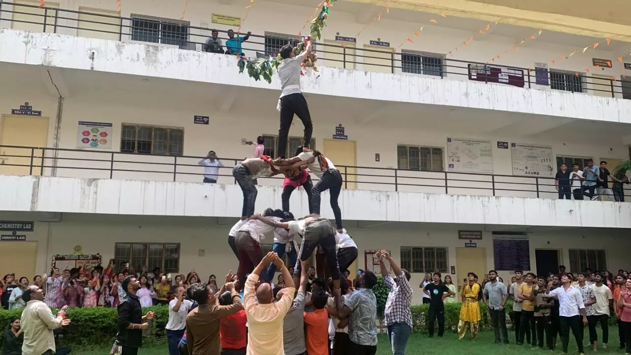 Pt. Harishankar Shukla Memorial College: पं. हरिशंकर शुक्ल स्मृति महाविद्यालय में "दही-हाण्डी जूट"…