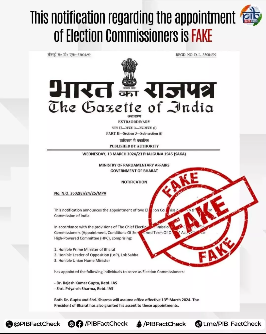Delhi News: चुनाव आयुक्तों की नियुक्ति के राजपत्र में शरारत, राजपत्र को पीआईबी ने बताया फेक, राजपत्र में छेड़छाड़ करने की जांच होगी…