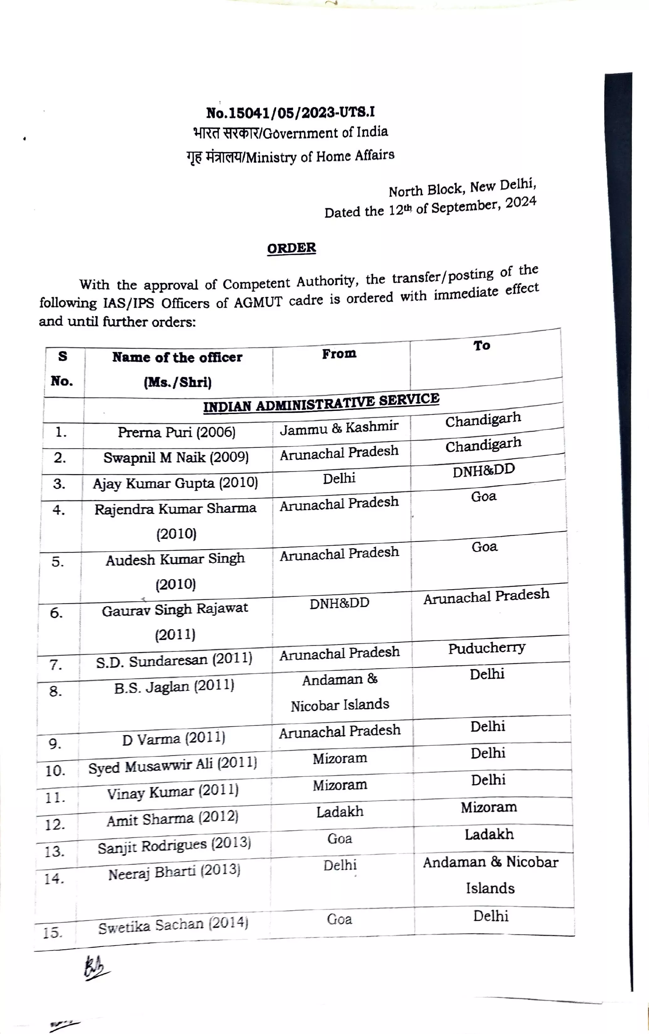 IAS IPS Transfer News: केंद्र सरकार ने गुरुवार को बड़े पैमाने पर आईएएस और आईपीएस अधिकारियों का ट्रांसफर किया है. केंद्रीय गृह मंत्रालय 78 अधिकारियों का तबादला कर दिया है. जिसमे 33 आईएएस और 45 आईपीएस अधिकारी शामिल है. दिल्ली में नार्थ-ईस्ट, नार्थ, नार्थ-वेस्ट, साउथ-वेस्ट और साउथ-ईस्ट जिले के डीसीपी का ट्रांसफर कर दिया गया है. इसके साथ ही दिल्ली मे तैनात 11 आईएएस अधिकारियों का भी तबादला हुआ है. भारत सरकार के अवर सचिव राकेश कुमार सिंह ने इसे लेकर आदेश जारी किया है.