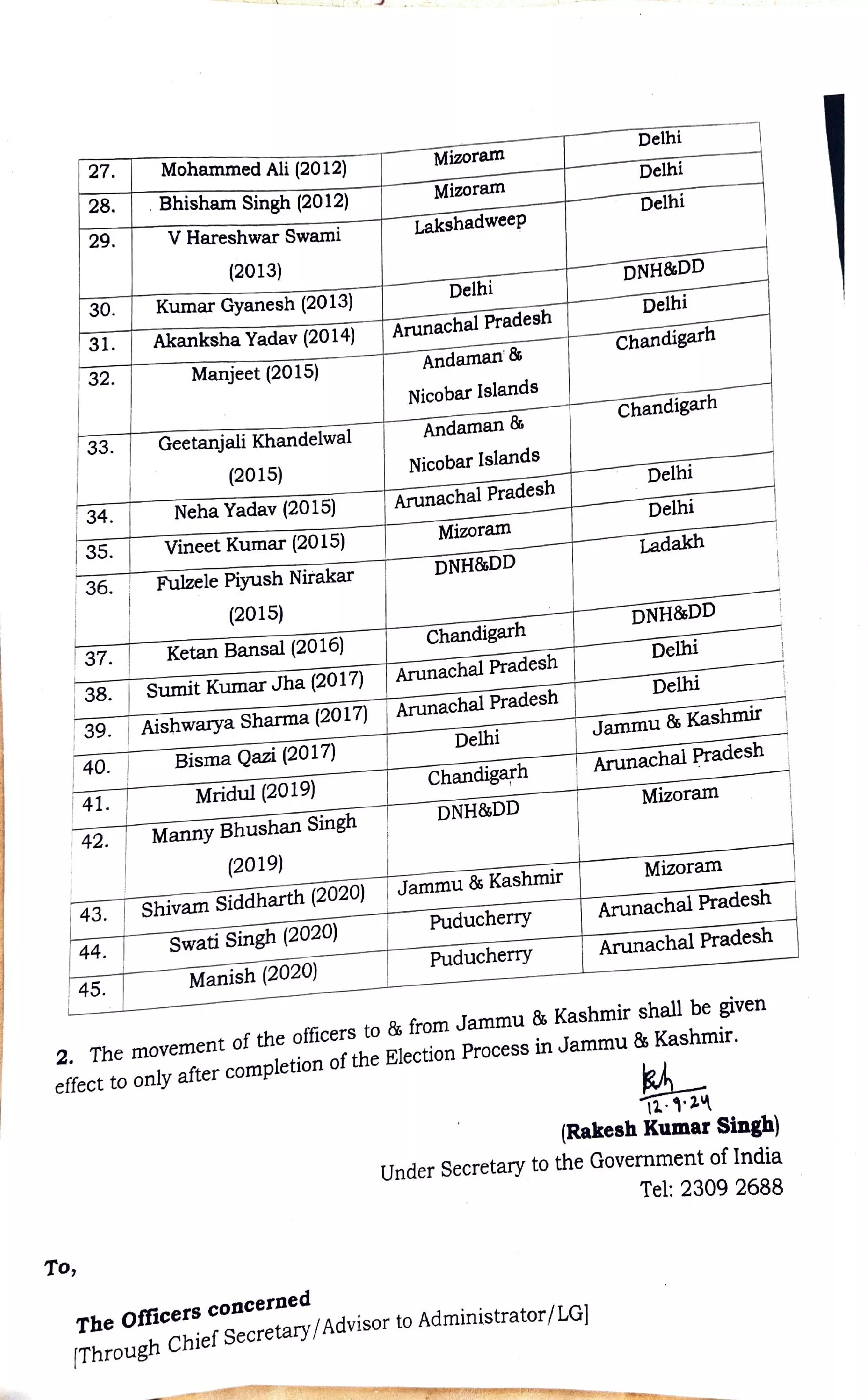 इन अधिकारियों का ट्रांसफर