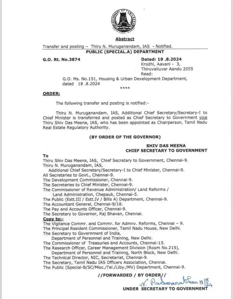 IAS Transfer News 2024: तमिलनाडु में तबादलों का सिलसिला जारी है. लगातार आईएएस और आईपीएस को इधर से उधर किया जा रहा है. इसी क्रम में एमके स्टालिन की सरकार ने एक बार फिर प्रशासनिक फेरबदल किया है. सोमवार को तीन आईएएस अफसरों का ट्रांसफर किया गया है. इसे लेकर आदेश जारी किया गया है. आईएएस थिरु के. एलंबहावथ को थूथूकुडी कलेक्टर पर पद तैनात किया गया है.