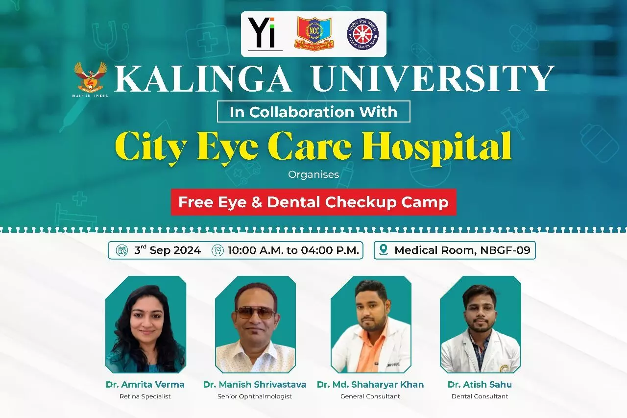 Kalinga University: नया रायपुर, 3 अगस्त 2024। कलिंगा विश्वविद्यालय नया रायपुर ने सिटी आई केयर हॉस्पिटल के सहयोग से मंगलवार को अपने विद्यार्थियों, संकाय सदस्यों एवं कर्मचारियों के लिए निःशुल्क नेत्र एवं दंत चिकित्सा जांच शिविर का सफलतापूर्वक आयोजन किया।