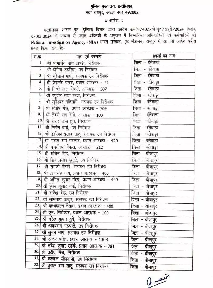 NIA in Bastar: बस्तर में NIA हुआ मजबूत, नक्सलियों पर शिकंजा कसने DGP ने 91 पुलिस अधिकारियों और कर्मचारियों को किया एनआईए में अटैच