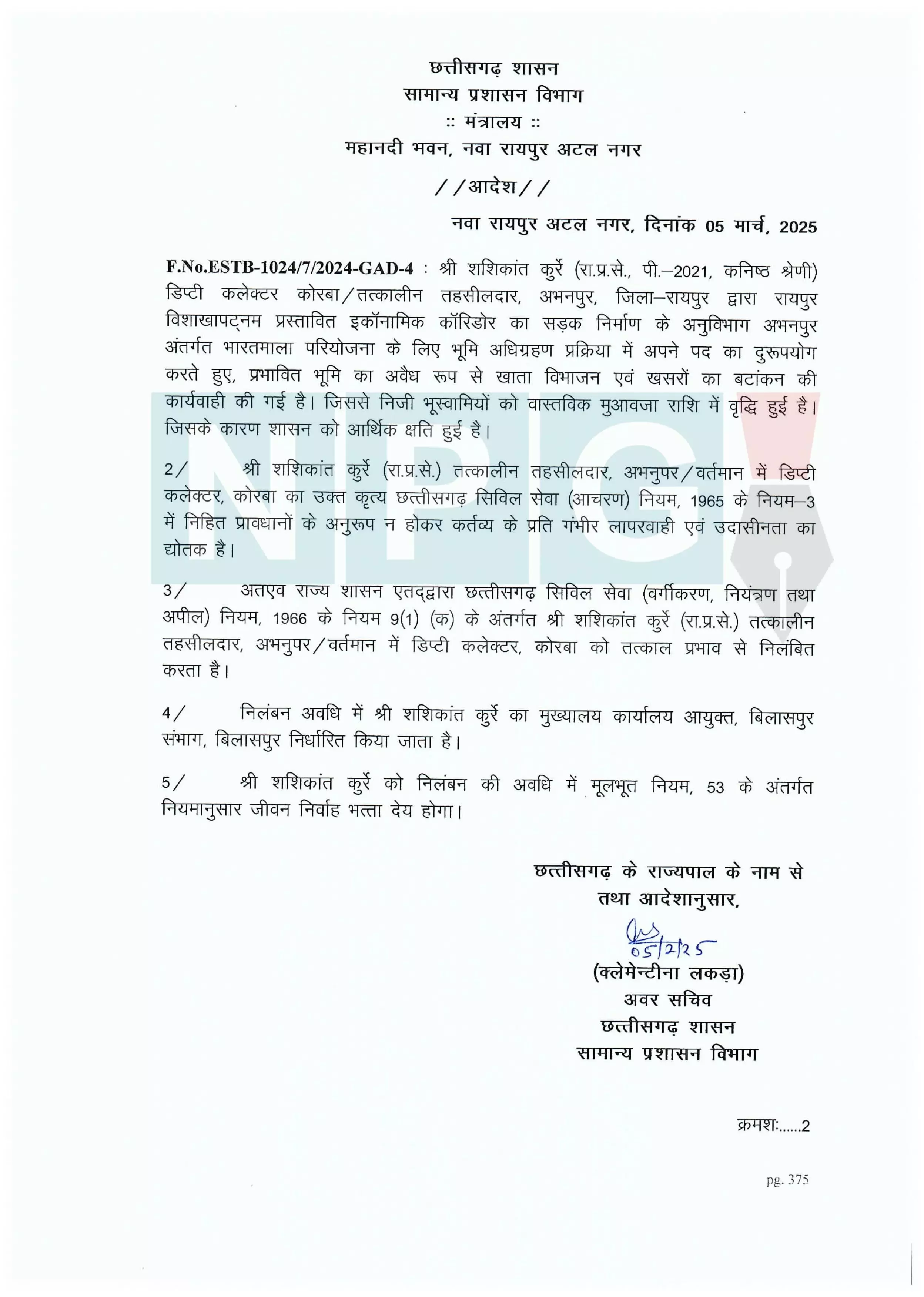 Raipur-Vishakhapatanam Land Scam: डिप्टी कलेक्टर सस्पेंडः NPG की खबर पर 326 करो़ड़ के मुआवजा घोटाले में डिप्टी कलेक्टर को सरकार ने किया निलंबित…