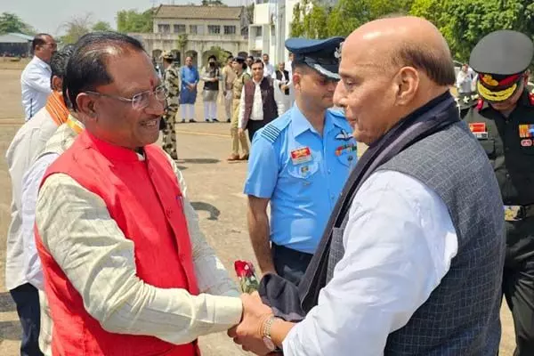 Rajnath Singh's visit: राजनाथ सिंह पहुंचे रायपुर: एयरपोर्ट पर सीएम व दोनों डिप्टी सीएम ने किया स्वागत, केंद्रीय रक्षा मंत्री किसान महाकुंभ में होंगे शामिल