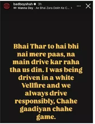 जानकरी के मुताबिक, रैपर बादशाह 15 दिसंबर को गुरुग्राम में सिंगर करण औजला के म्यूजिक इवेंट में गए थे, लेकिन जिस महिंद्रा थार गाड़ी में वह बैठे थे, उसमें नियमों का उल्लंघन किया गया था. जिसमें सड़क के गलत तरफ गाड़ी चलाने, तेज संगीत बजाने और लापरवाही से गाड़ी चलाने शामिल है. इसलिए उन पर 15,500 रुपये का जुर्माना लगाया गया था. अब रैपर ने अपने सोशल मीडिया पर ट्रैफिक नियमों का उल्लंघन करने से इनकार किया और कहा कि उनके पास थार नहीं है. इंस्टाग्राम स्टोरीज पर एक पोस्ट शेयर करते हुए बादशाह ने लिखा, “भाई, थार तो है नहीं मेरे पास, ना मैं ड्राइव कर रहा था उस दिन. मुझे सफेद वेलफायर में ले जाया जा रहा था और हम हमेशा जिम्मेदारी से गाड़ी चलाते हैं, चाहे गाड़ियां चाहे गेम.”