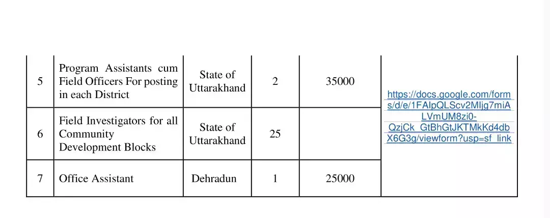 | फील्ड इन्वेस्टिगेटर्स (सभी सामुदायिक विकास खंड) | उत्तराखंड राज्य | 25 |