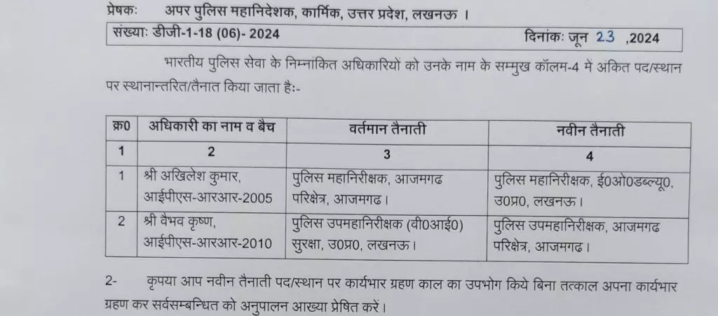 UP IPS Transfer News: यूपी में दो IPS अधिकारियों का तबादला, आईपीएस अखिलेश कुमार बने EOW के आईजी
