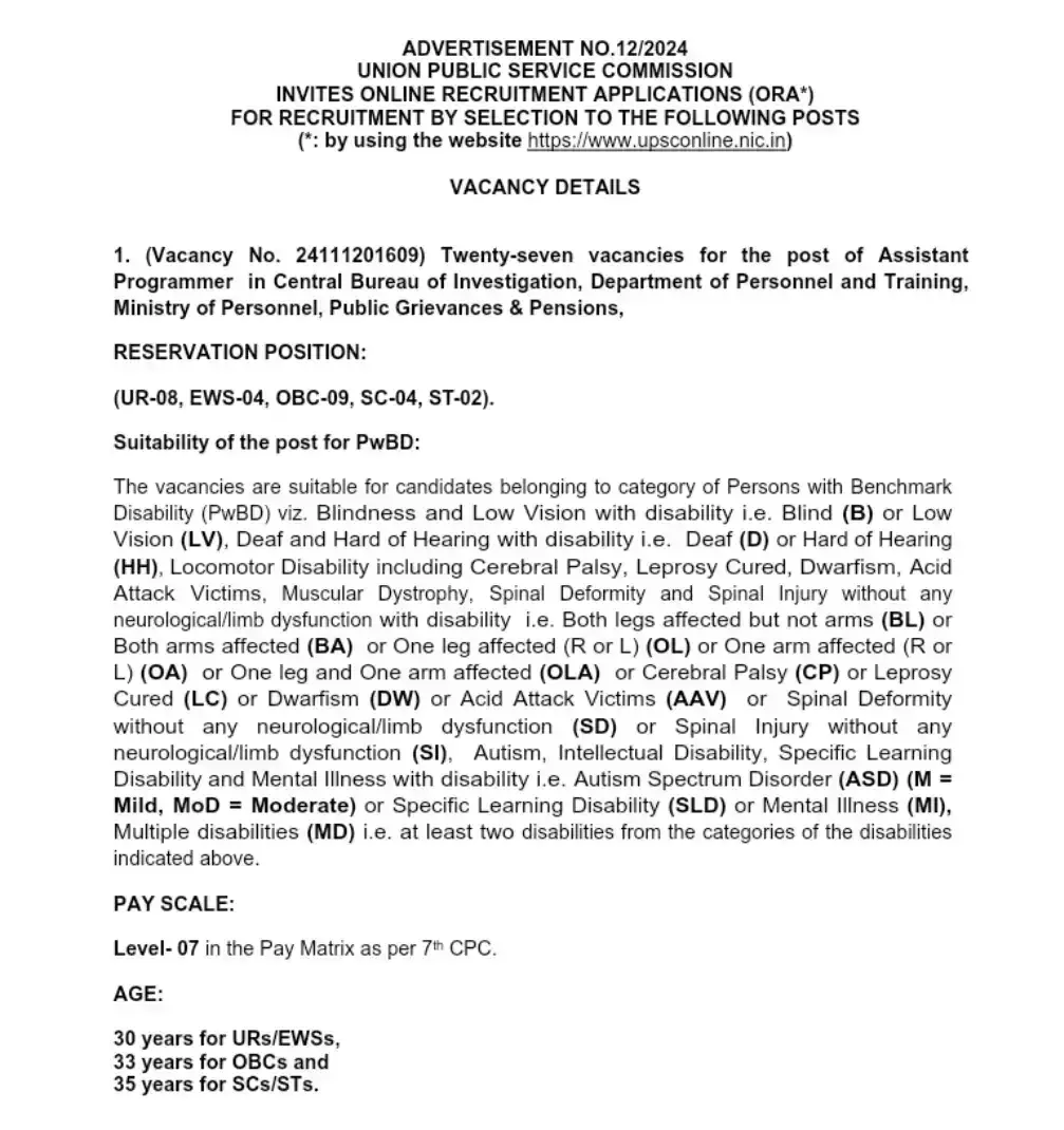 👉:: UPSC CBI Assistant Programmer Recruitment 2024 PDF